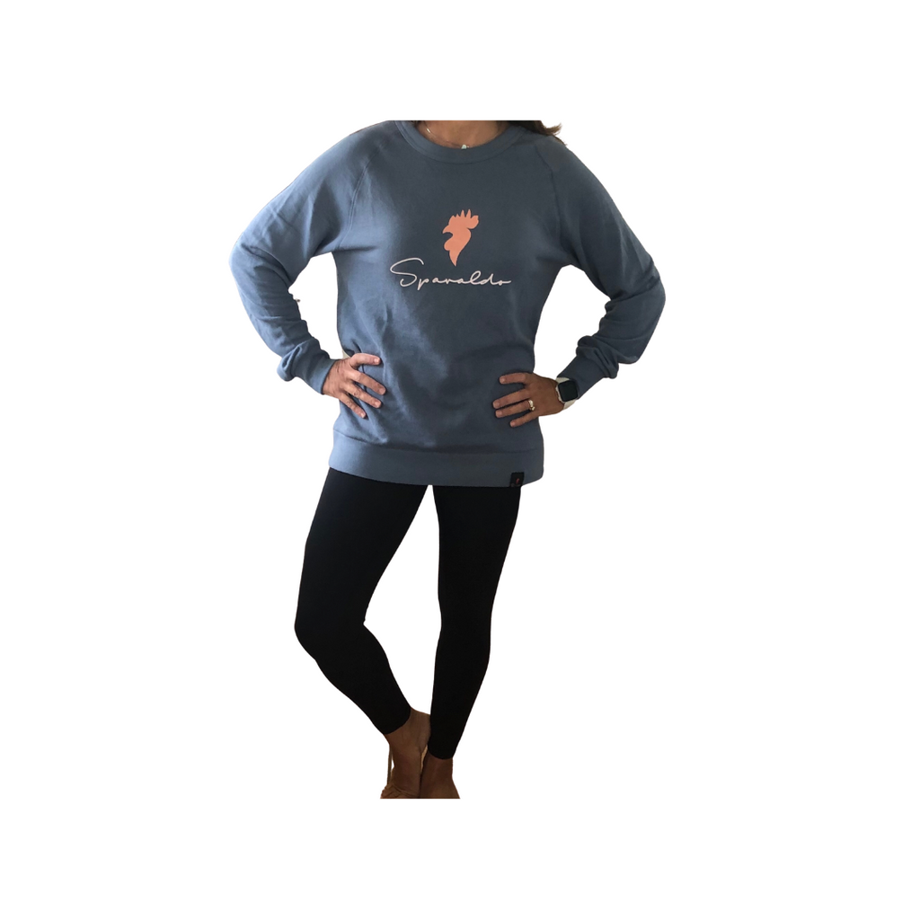 This blended fabric sweatshirt provides the perfect warmth and style without the bulk of a traditional hoodie for those laid back weekend days soaking in your best life.